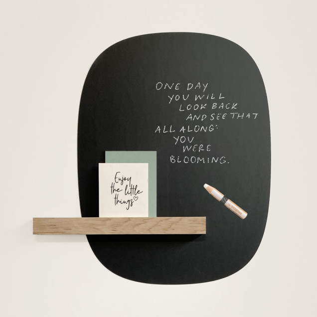 Această cutie cadou îți permite să începi imediat. Pixul multifuncțional inclus transformă stickerul într-o tablă de scris, iar polița de perete din lemn îți oferă spațiul ideal pentru a expune cărți poștale și fotografii. Perfectă pentru a fi oferită cadou.