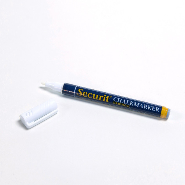 Acest marker cu cretă lichidă pe bază de apă facilitează crearea de texte și desene temporare. Este opac și se poate șterge cu o cârpă umedă, oțet nediluat și detergent de vase.