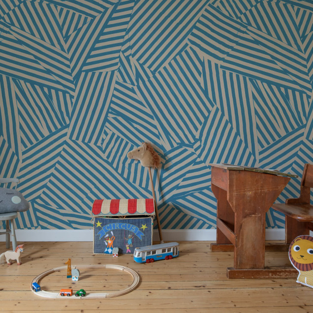 Acest tapet aduce un plus de stil oricărei camere. Liniile sale îndrăznețe și dinamice în nuanțe de albastru creează un efect vizual captivant și contemporan.Materiale disponibile