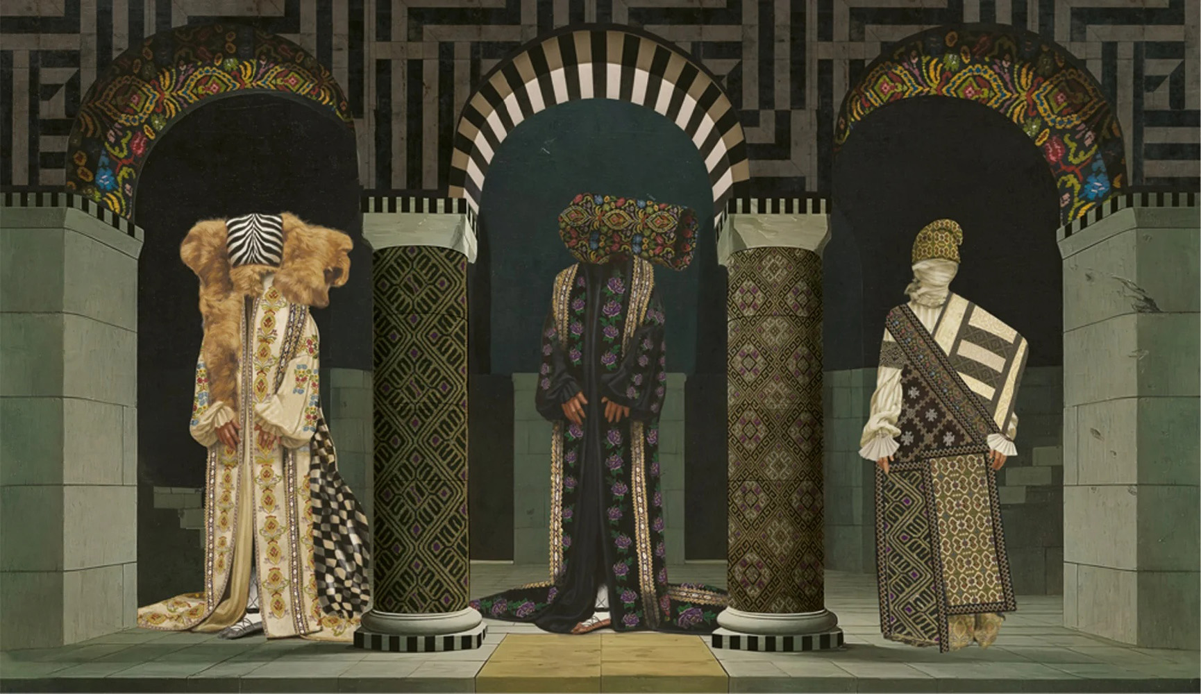 Inspirația vine din portul popular românesc și din universul meșteșugurilor vechi: ii cusute cu răbdare, textile ritualice, covoare de casă, fote și catrințe, motive geometrice și florale care au spus povești, au ținut loc de amuletă și de apartenență. În „Origini”, aceste repere sunt filtrate prin artă modernă și transformate într-un limbaj vizual curat, expresiv, plin de aer. Motivele cusute altădată devin tușe grafice îndrăznețe, ritmuri lineare și compoziții aproape arhitecturale. Bordurile tradiționale se recompun în registre minimaliste, iar contrastele alb-negru sunt puse în scenă cu accente vii, urbane, care dau energie și prospețime.