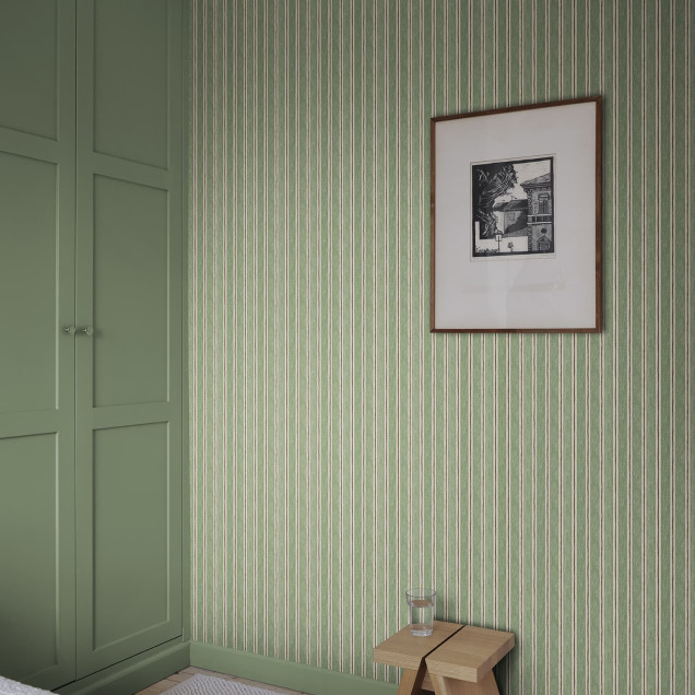 Îmbracă-ți pereții cu un tapet verde închis, cu dungi subtile, pentru un aspect elegant și rafinat. Perfect pentru a adăuga un plus de stil oricărei camere.