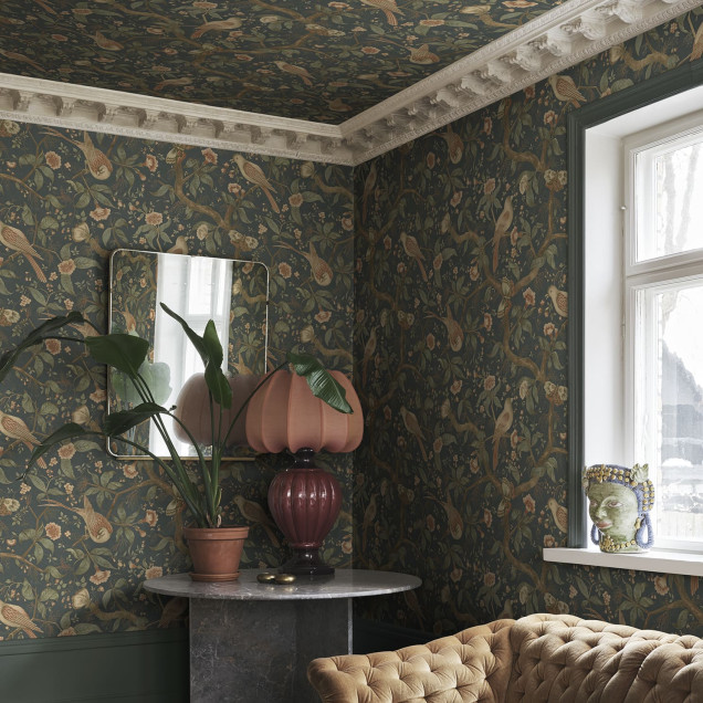 Alexa, Classic Blue, Sandberg Tapet cu Model Floral și Păsări pentru Interioare Elegante