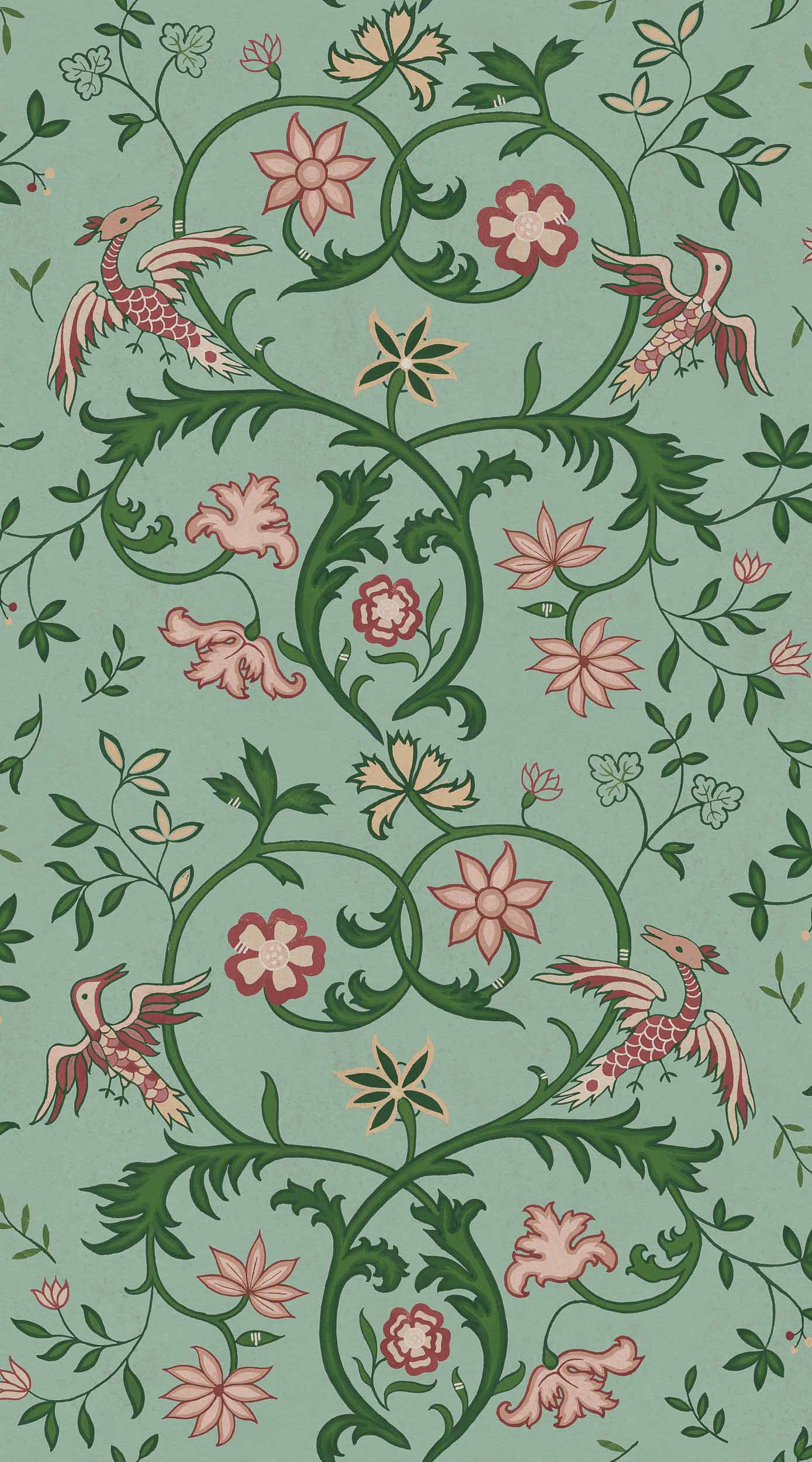 Antwerp Damask, Sage, Coordonne, 5mp / rola Tapet Damasc Verde Salvie pentru un Interior Elegant