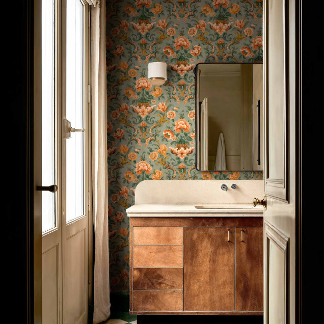 Adaugă un strop de eleganță clasică spațiului tău cu acest tapet damasc delicat, în nuanțe de verde salvie. Perfect pentru un interior rafinat și primitor.