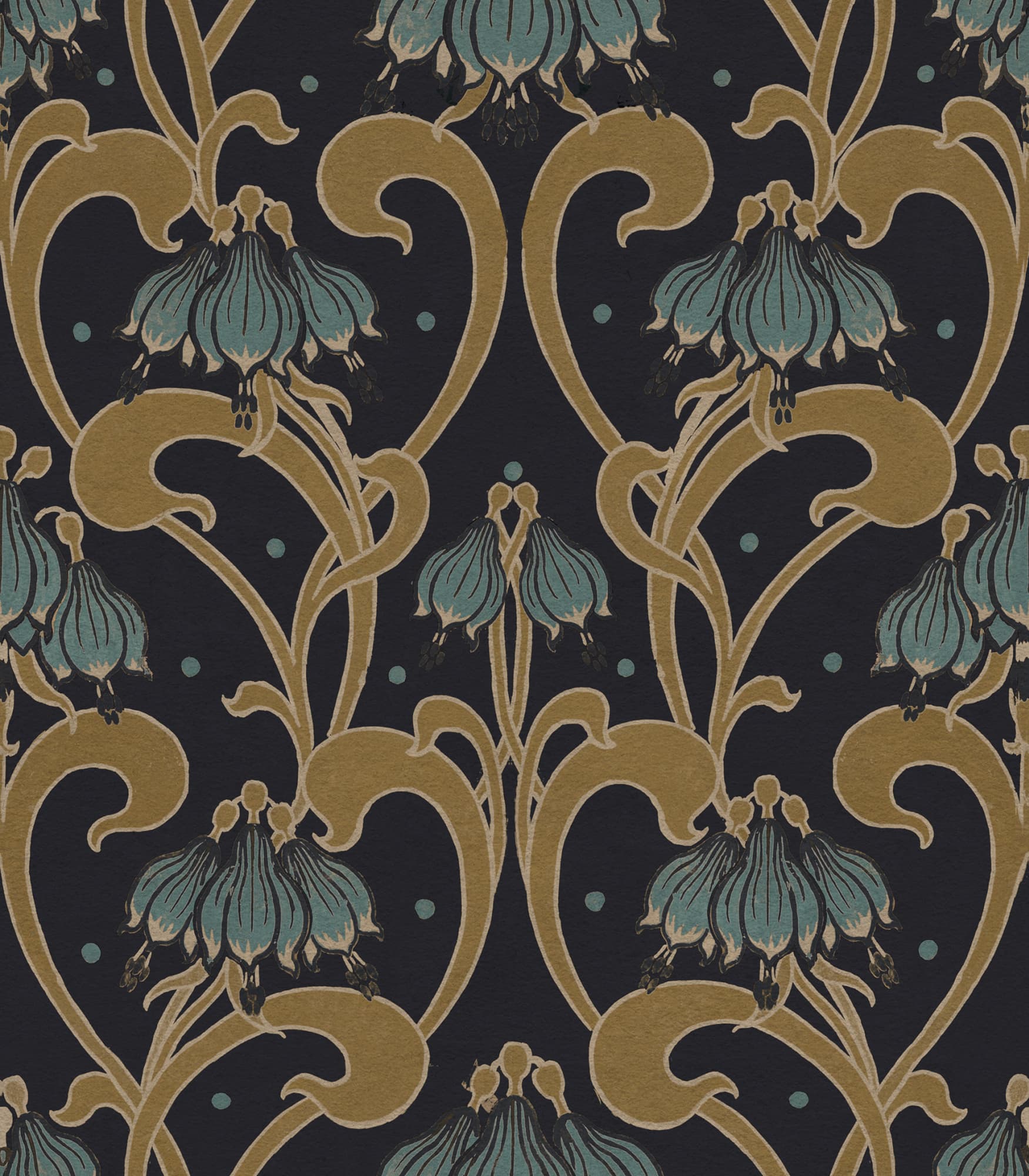 Art Nouveau Flower, Brown, Rebel Walls Tapet Floral Maro în Stil Art Nouveau