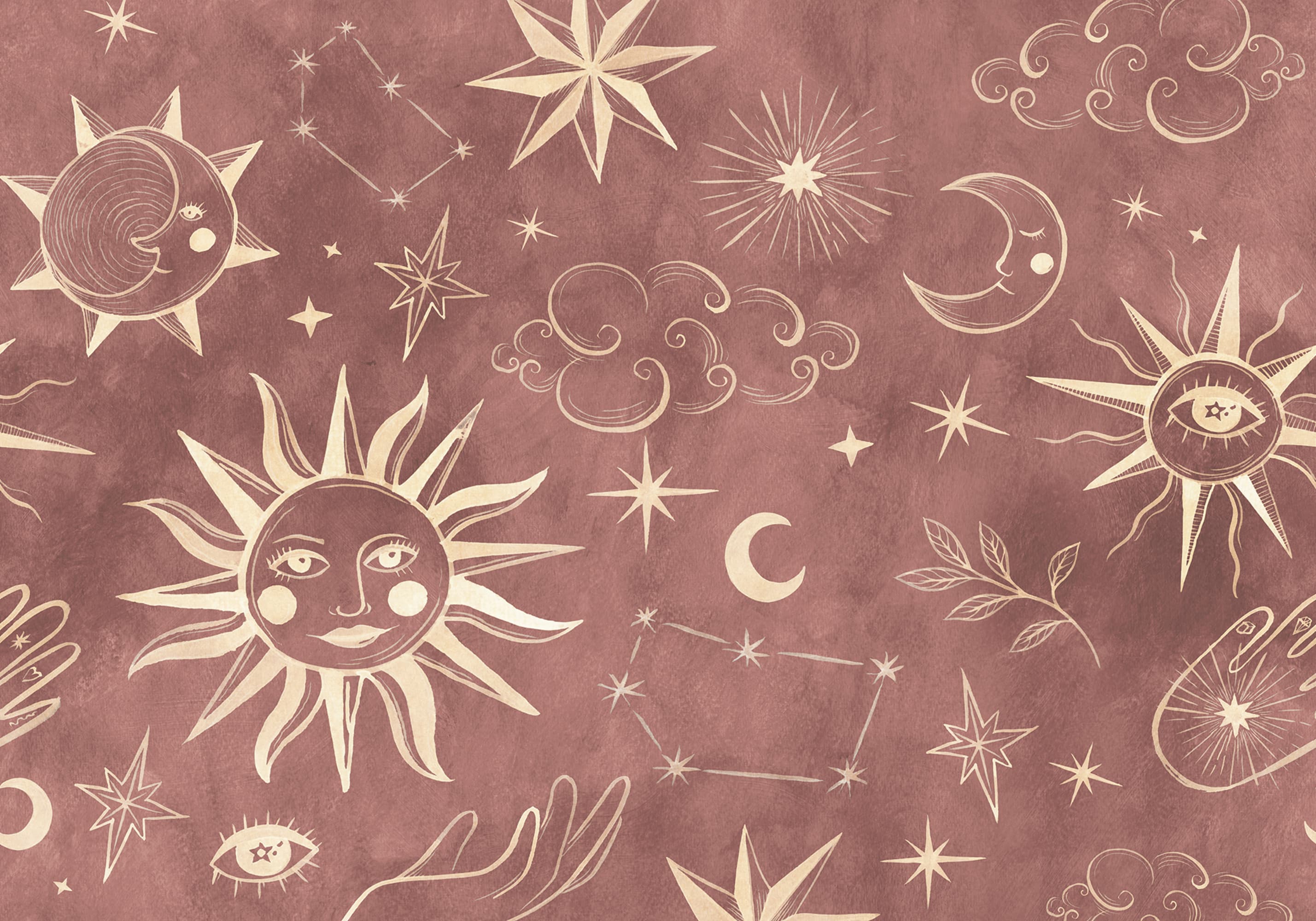 Astrology, Red, Rebel Walls Tapet Astronomic in Nuante de Rosu