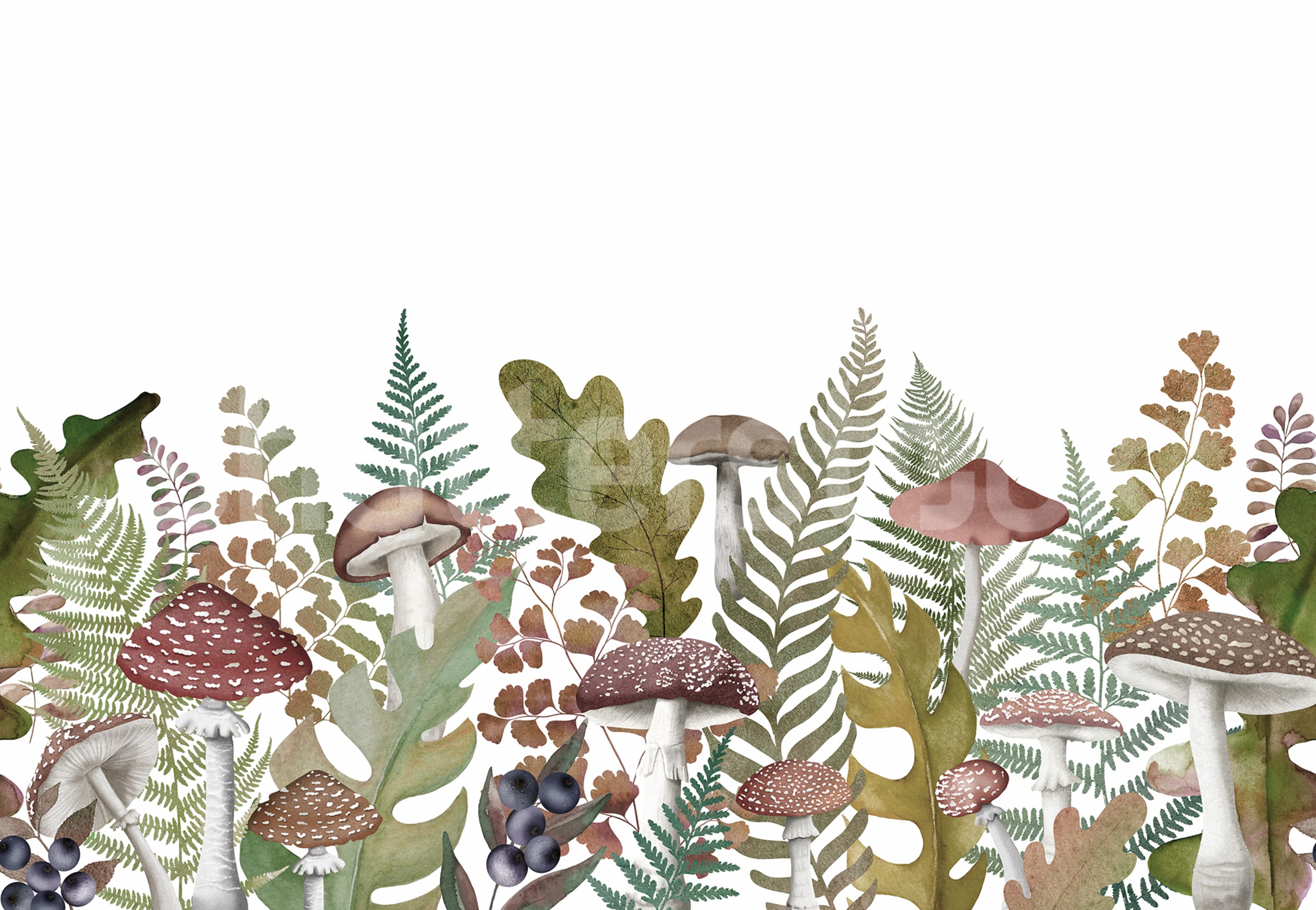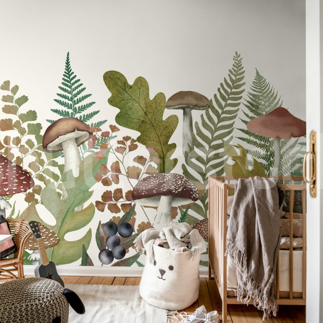 Autumn Meadow, Vintage, Rebel Walls Tapet Vintage cu Ciuperci și Ferigi