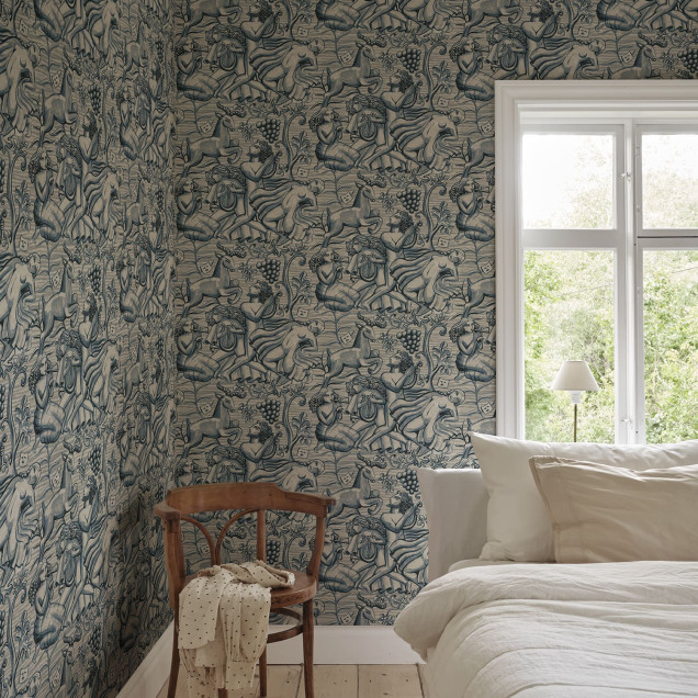 În anii 1920, clasicismul nordic era predominant în Suedia, iar artiștii vremii, precum Carl Milles și Anna Petrus, foloseau adesea mitologia clasică în crearea sculpturilor lor. Amprenta lor asupra istoriei designului a fost sursa de inspirație pentru acest tapet elegant. Culoarea albastră a Baccus adaugă o notă senină, dar sofisticată spațiului dvs.