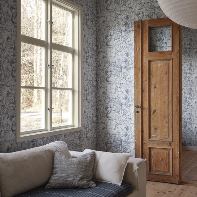 În anii 1920, clasicismul nordic era predominant în Suedia, iar artiștii vremii, precum Carl Milles și Anna Petrus, foloseau adesea mitologia clasică în crearea sculpturilor lor. Amprenta lor asupra istoriei designului a fost sursa de inspirație pentru acest tapet elegant. Într-un albastru deschis liniștitor, acesta adaugă o notă de frumusețe clasică oricărei încăperi.