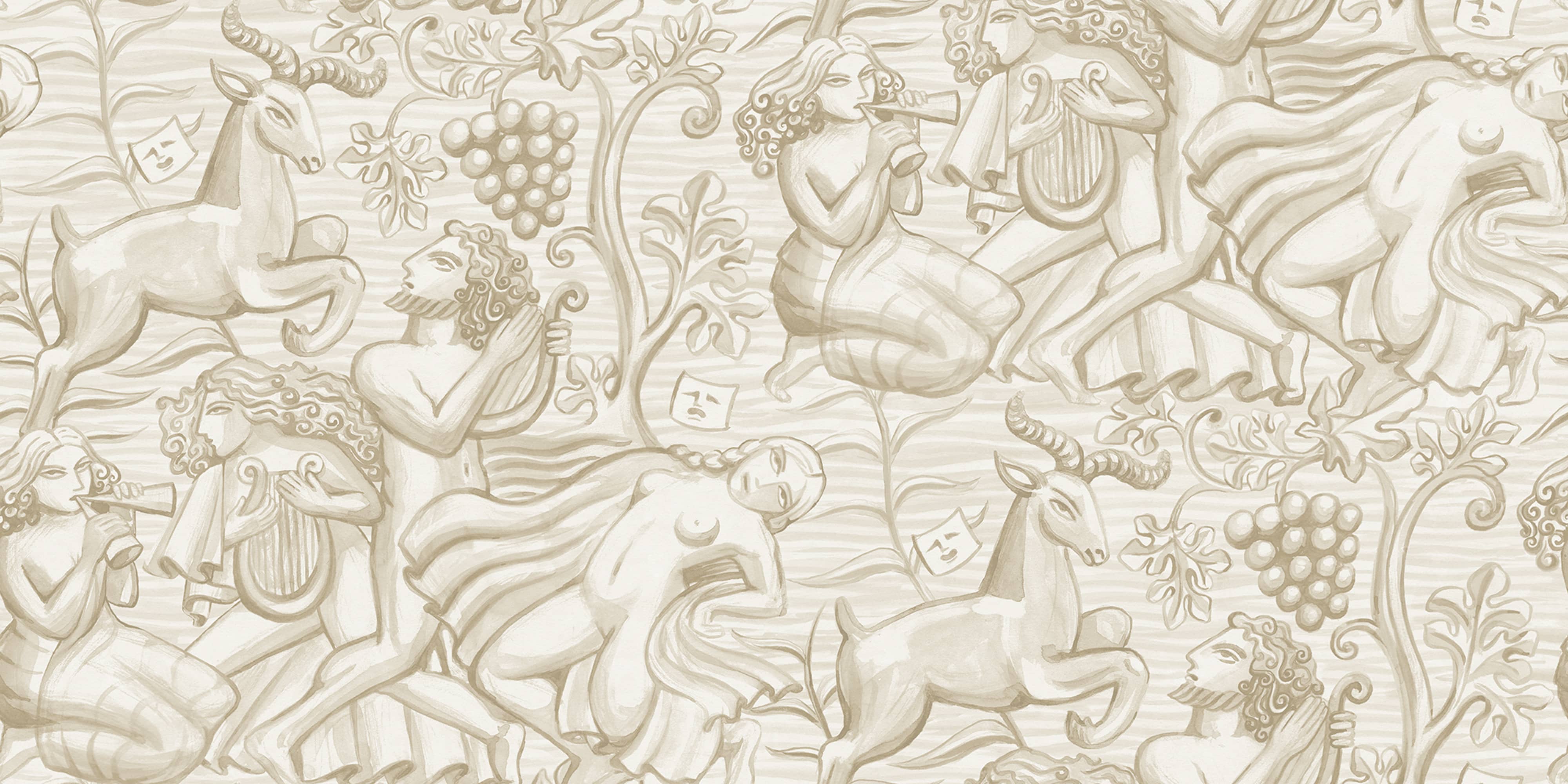 În anii 1920, clasicismul nordic era predominant în Suedia, iar artiștii vremii, precum Carl Milles și Anna Petrus, foloseau adesea mitologia clasică în crearea sculpturilor lor. Amprenta lor asupra istoriei designului a fost sursa de inspirație pentru acest tapet elegant. Într-o nuanță calmă de nisip, Baccus evocă un sentiment de frumusețe atemporală.