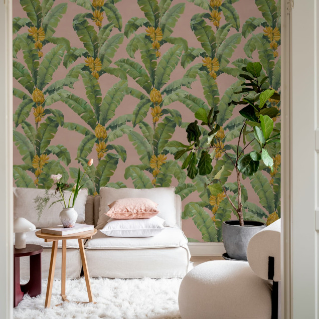 Banana Leaf, Pink, Rebel Walls Tapet Exotism Tropical