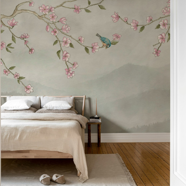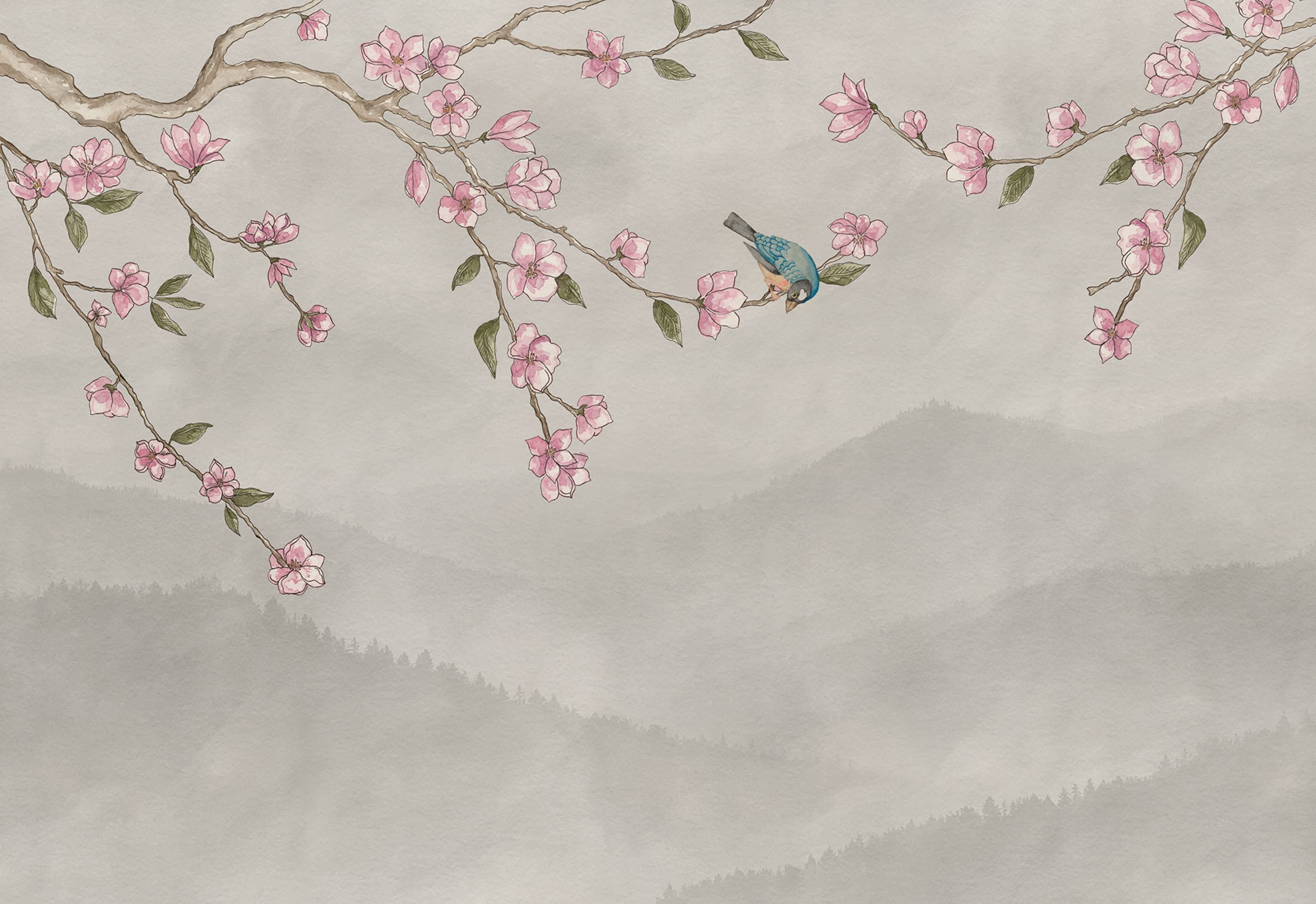 Acest tapet bej aduce un strop de natura in casa ta. Designul prezinta o pasare delicata pe o ramura inflorita.Materiale disponibile