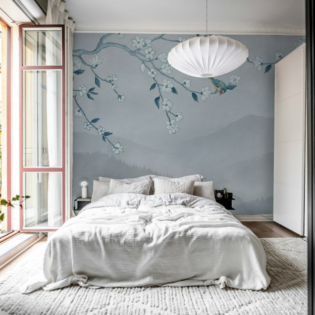 Bird in Tree, Blue, Rebel Walls Eleganță naturală pentru pereții tăi