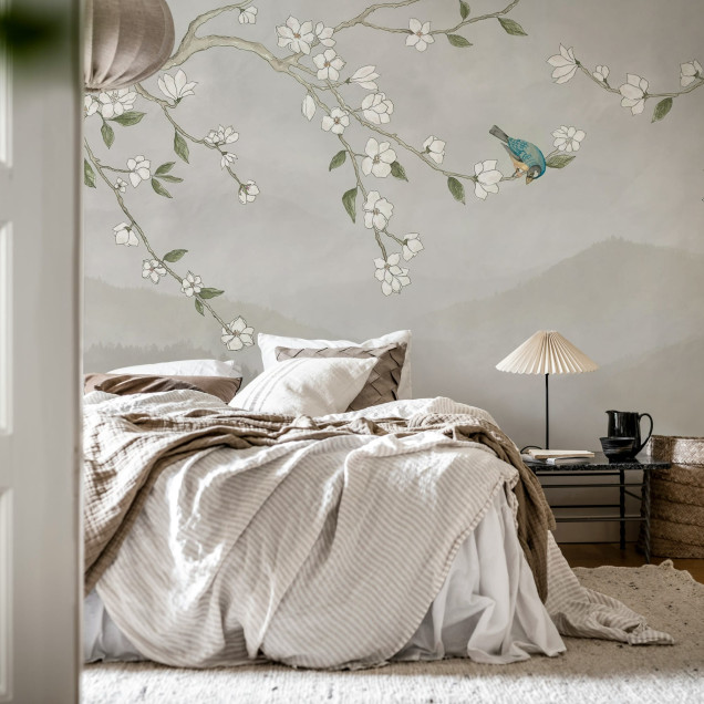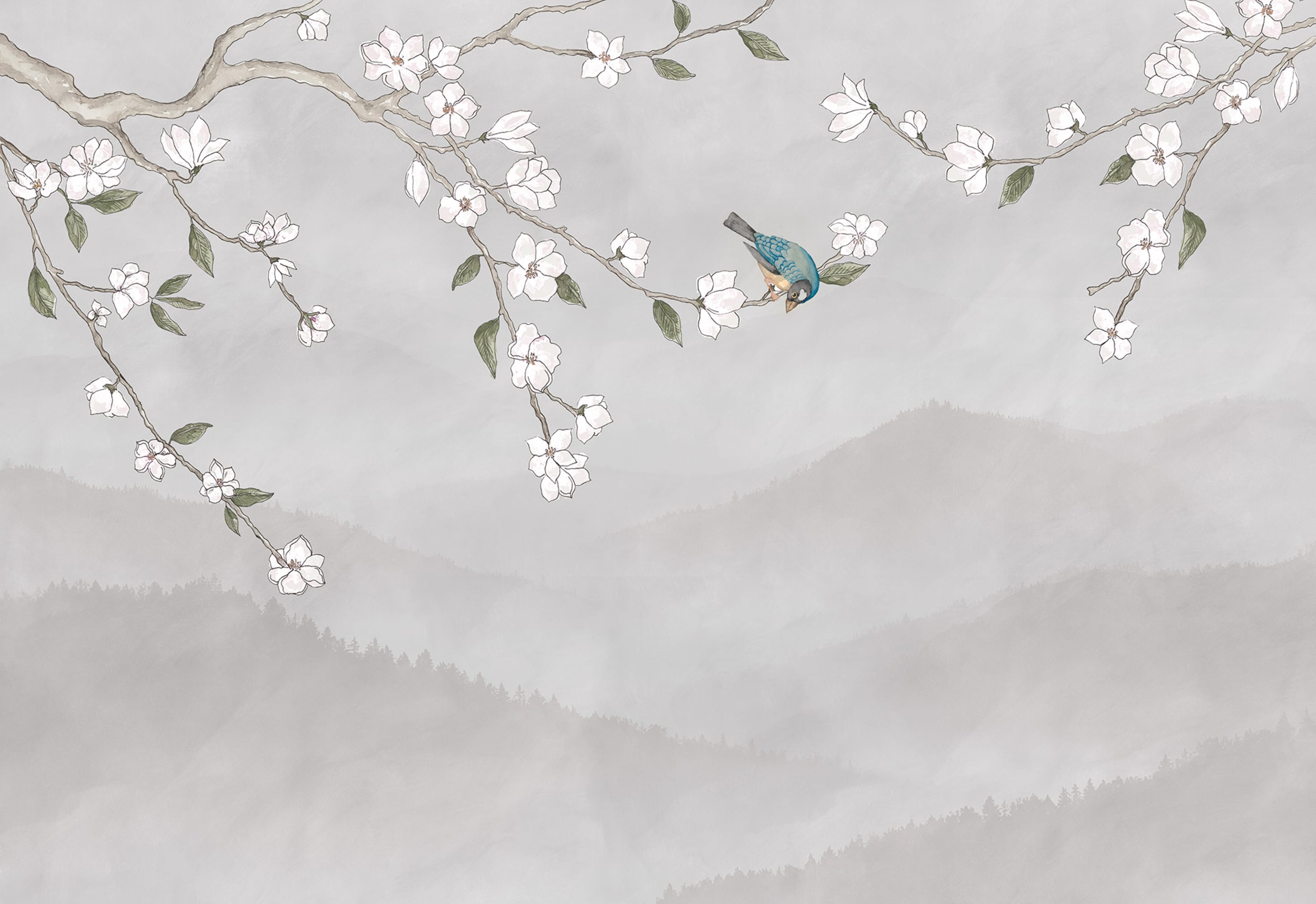 Transformă-ți spațiul cu un fototapet elegant ce prezintă o ramură înflorită și o pasăre delicată. Ideal pentru un decor relaxant și primitor.Materiale disponibile