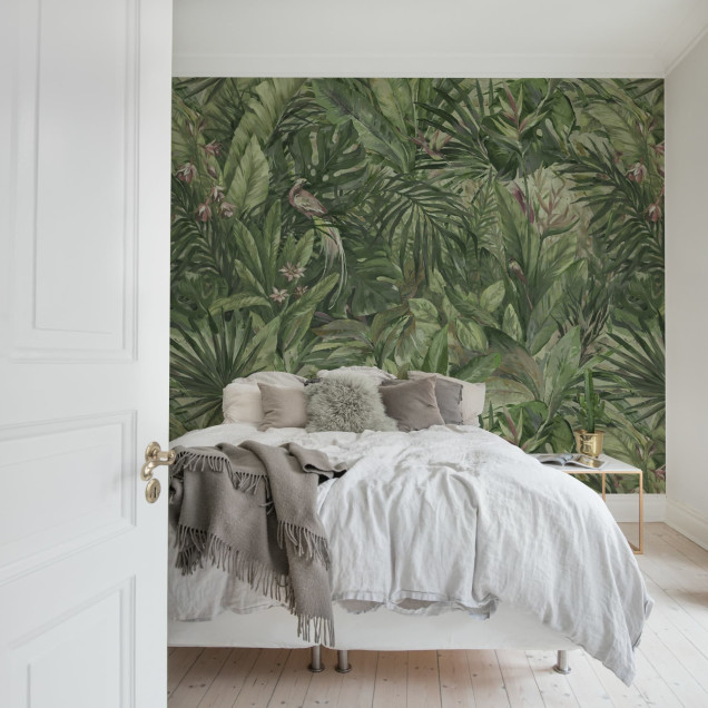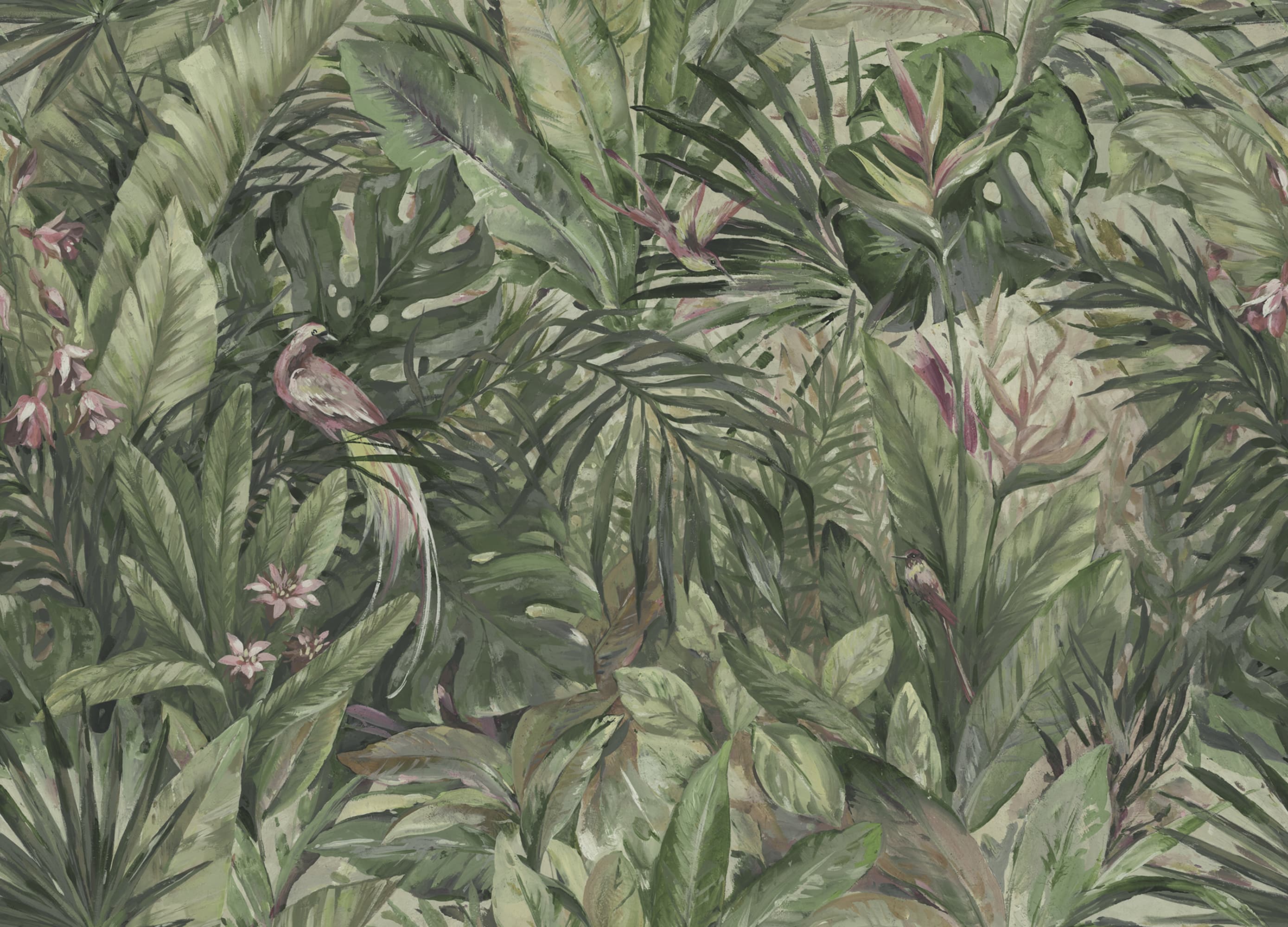 Birds in the Jungle, Green, Rebel Walls Tapet cu Păsări în Junglă: O Oază Tropicală