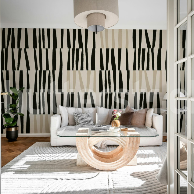 Bold Strokes, Black & Beige, Rebel Walls Tapet Modern cu Linii Îndrăznețe, Negru și Bej