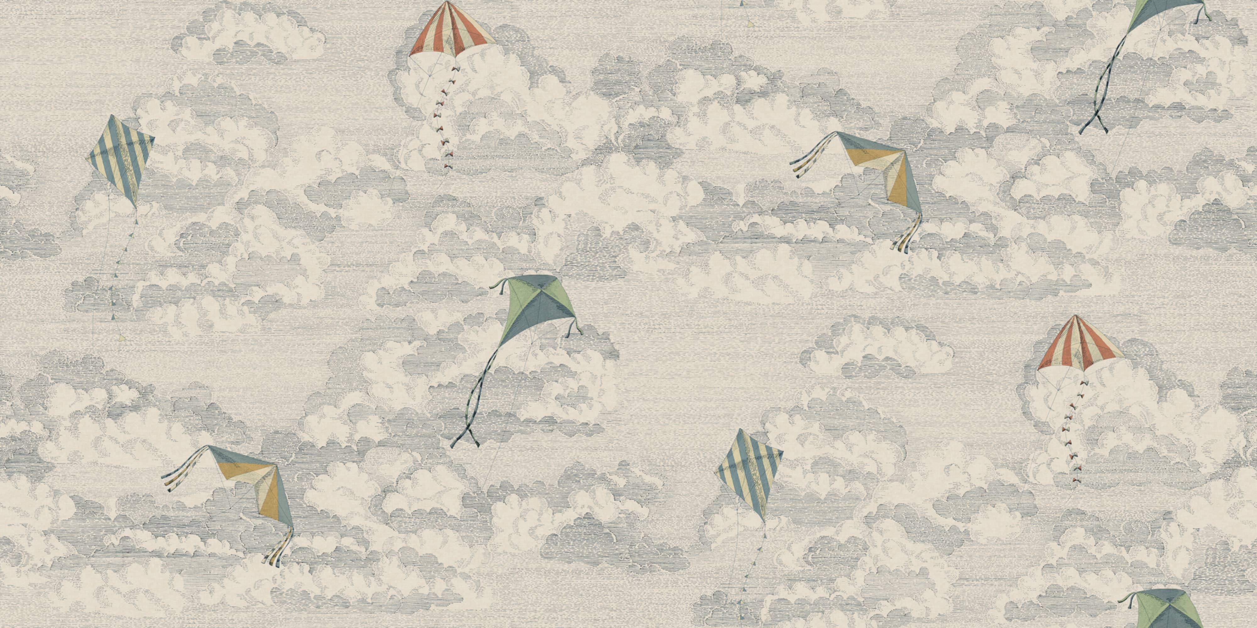 Bonnie and Kites, Blue, Sandberg Tapet cu Zmee Colorate și Nori Pufoși