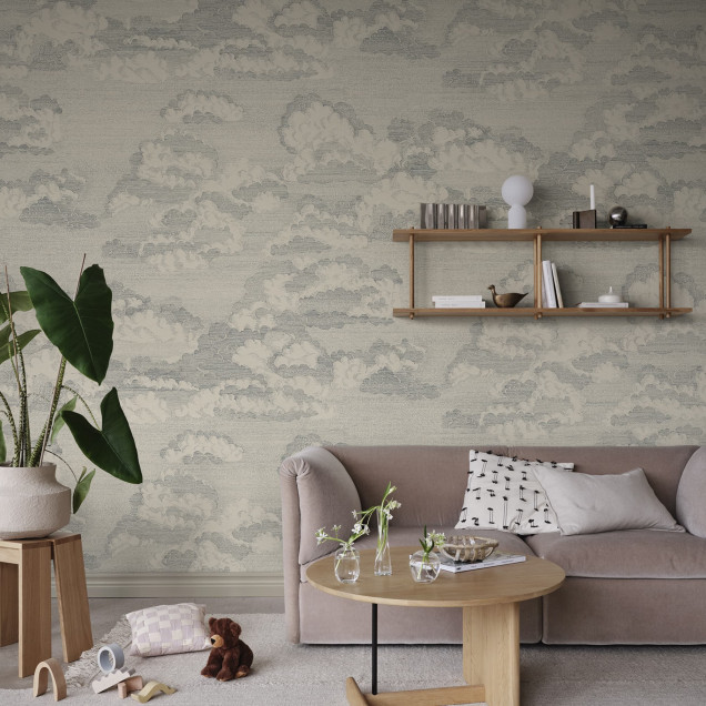 Tapet cu design delicat, inspirat de nori, perfect pentru a aduce o atmosferă calmă și relaxantă în orice cameră. Creează un spațiu plin de farmec și poezie.- Colecție: Familjen