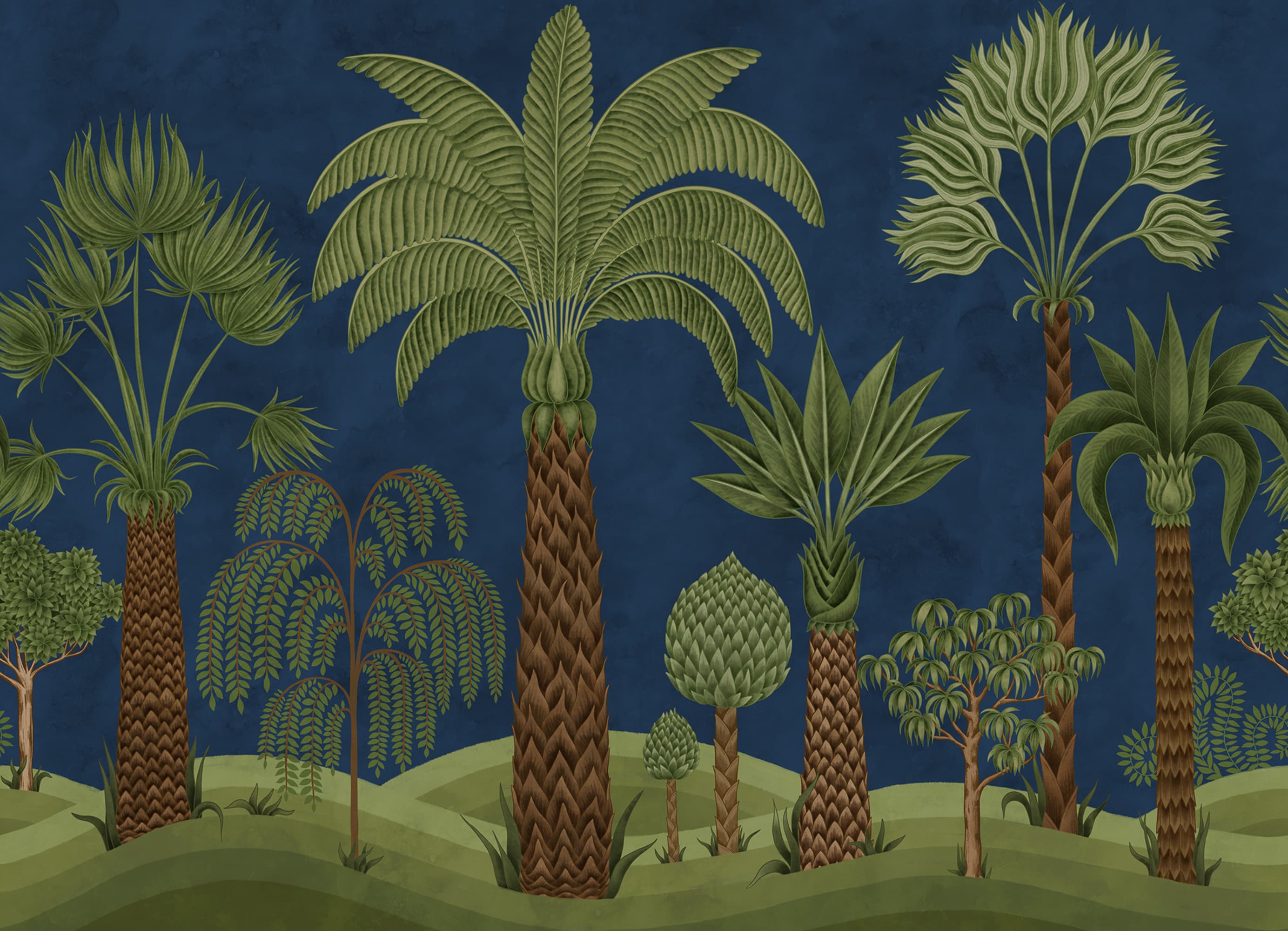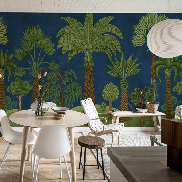 Botanical Bliss, Dark Blue, Rebel Walls Tapet cu motive botanice, albastru închis