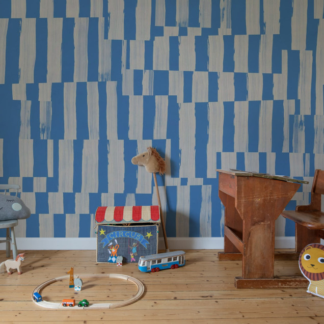 Broken Stripes, Blue, Rebel Walls Fototapet cu Linii Imperfecte Albastre