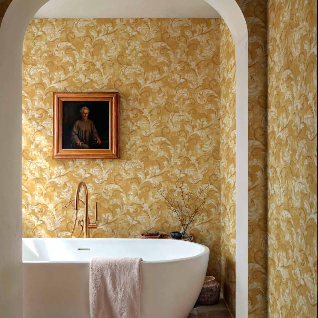 Acest tapet cu model damasc aduce un aer sofisticat și cald oricărui spațiu. Nuanța muștar creează o atmosferă primitoare și luxoasă, ideală pentru un decor rafinat. Perfect pentru living, dormitor sau baie.- Colecție: Damaskus
