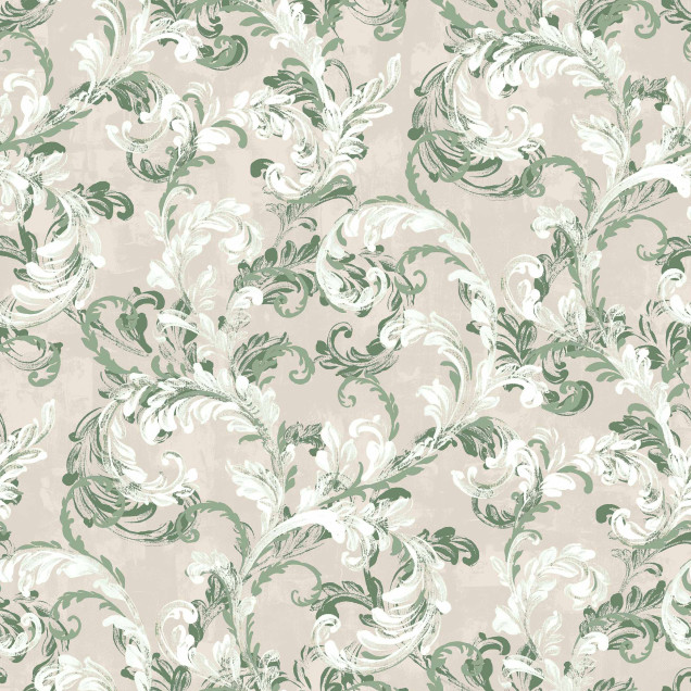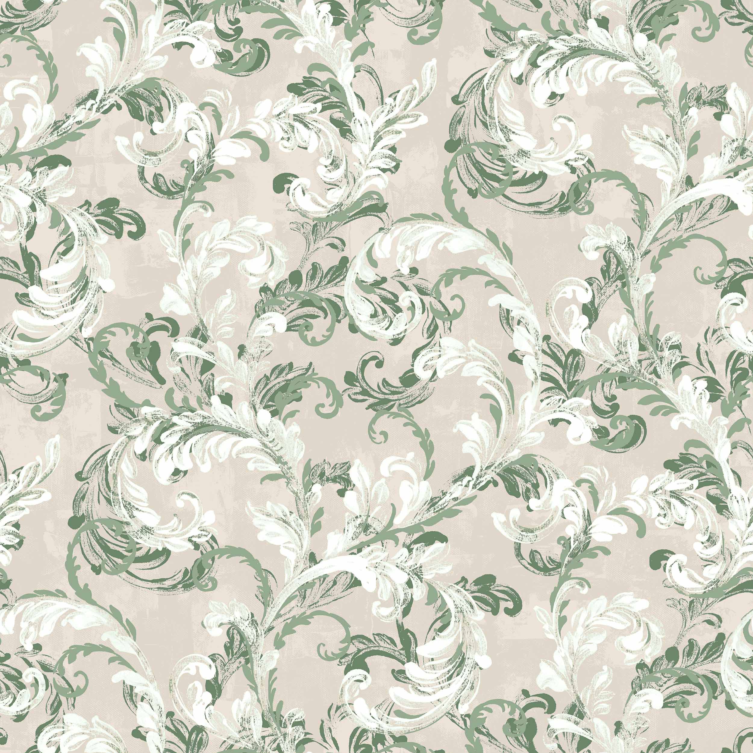 Byzantine Damask, Sage, Coordonne, 5mp / rola Tapet Damasc Bizantin Verde Salvie