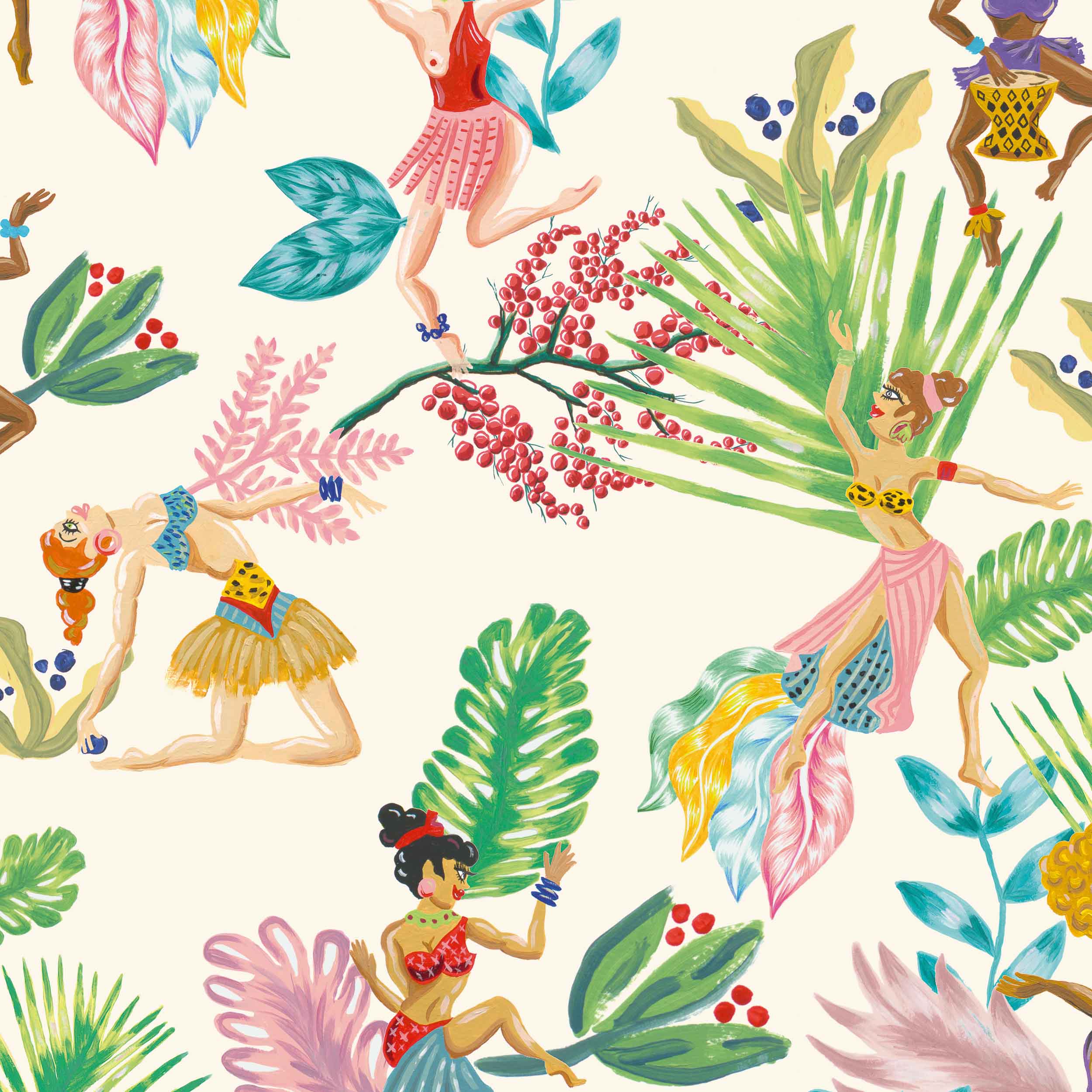 Calypso Dancers, Hueso, Coordonne, 5mp / rola Tapet Floral Vibrant pentru un Decor Plin de Viata
