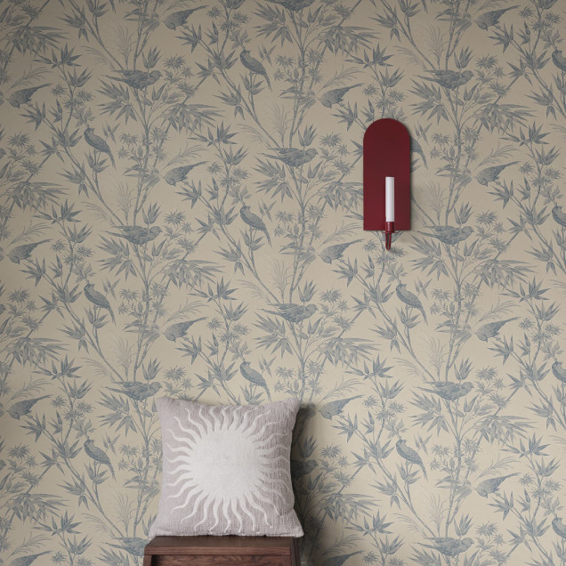 Adaugă un strop de natură elegantă locuinței tale! Acest tapet cu design floral și păsări în nuanțe indigo creează o atmosferă calmă și sofisticată. Perfect pentru living sau dormitor.
