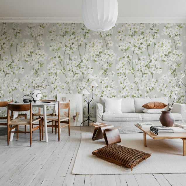 Cherry Blossom Tree, White, Rebel Walls Tapet floral cu flori de cireș albe