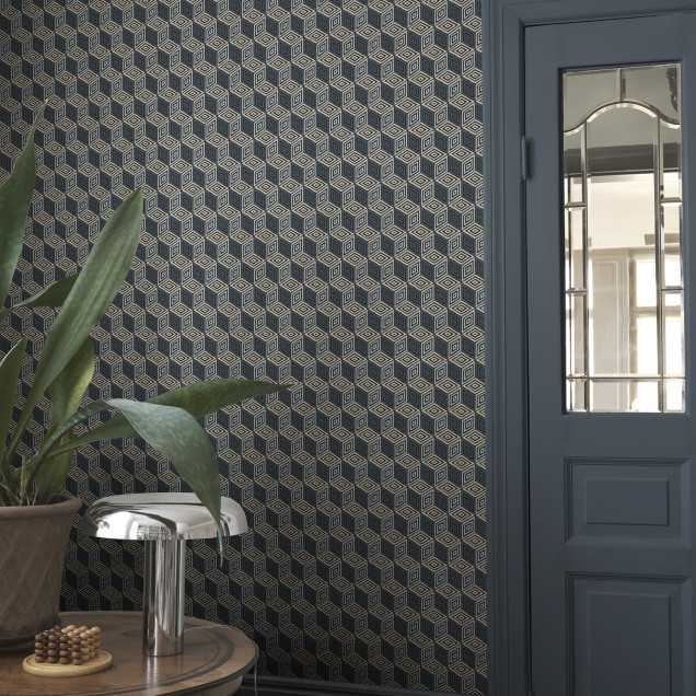 Acest tapet albastru inchis aduce un plus de stil oricărui interior. Modelul geometric creează un efect vizual captivant, perfect pentru a adăuga personalitate locuinței tale.- Colecție: Villa Como
