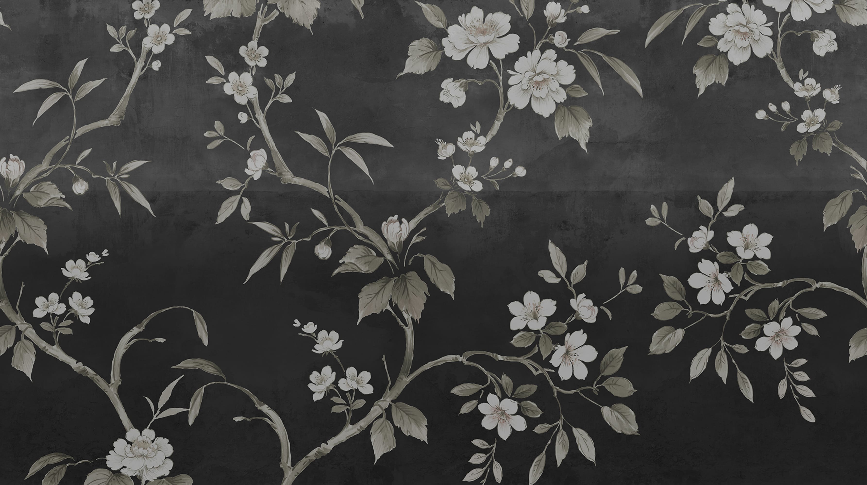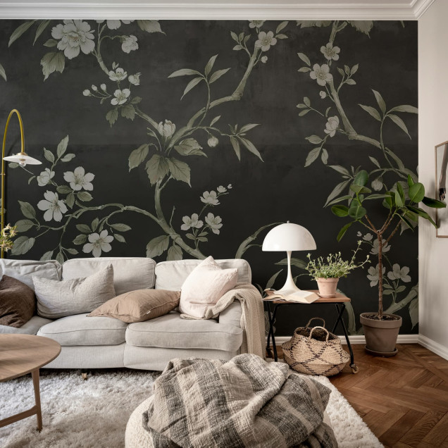 Concrete Flowers, Black, Rebel Walls Fototapet Floral Elegant pentru Peretii Tai
