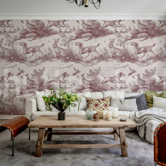 Tapetul cu un design inspirat de viața la țară aduce un aer boem. Ilustrațiile cu animale și motive naturale, într-o nuanță rafinată de roșu Cambridge, creează un ambient cald și primitor.Materiale disponibile