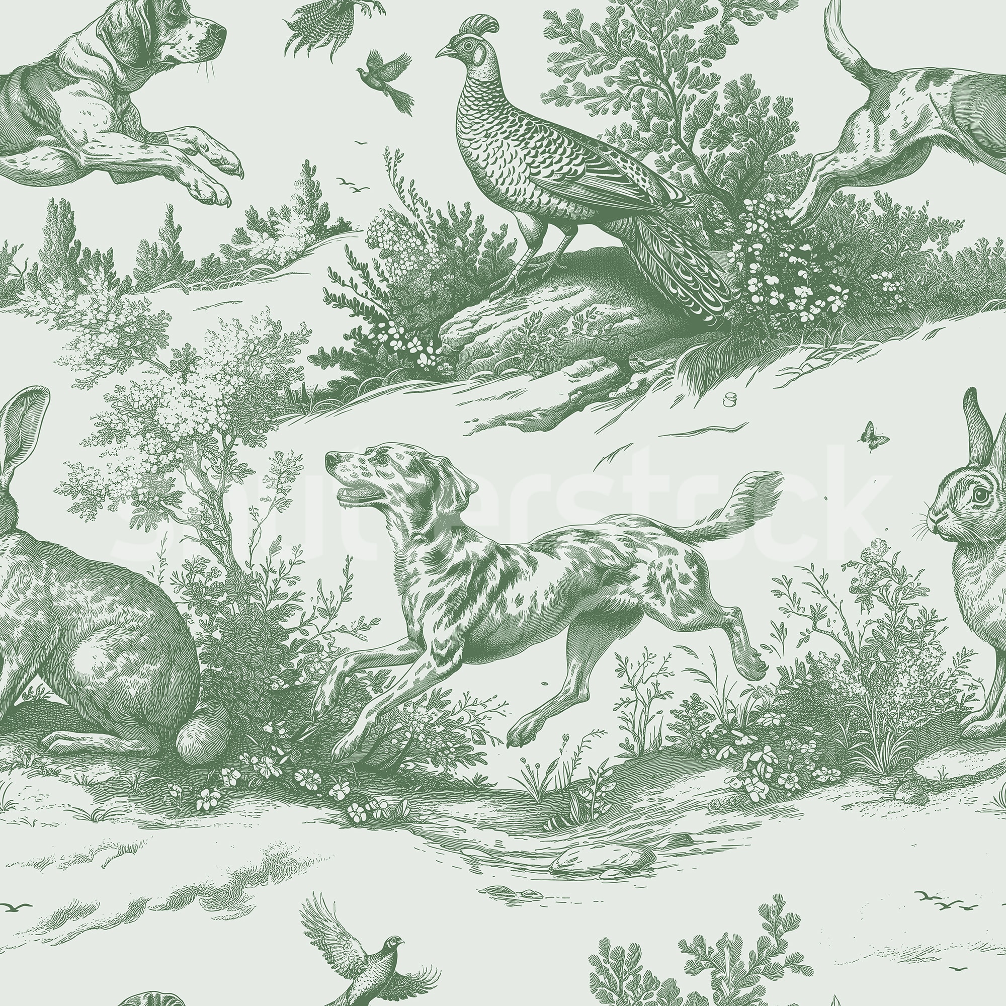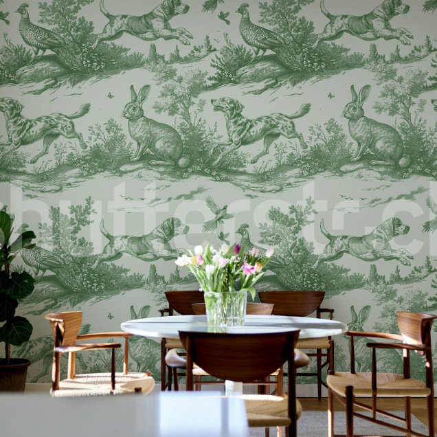 Countryside Tales, Richmond Green, Rebel Walls Tapet cu motive rurale, verde Richmond