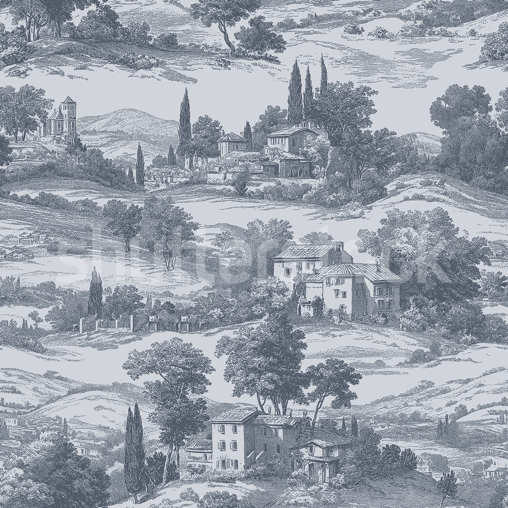 Countryside Toile, Oxford Blue, Rebel Walls Tapet decorativ cu peisaj rural