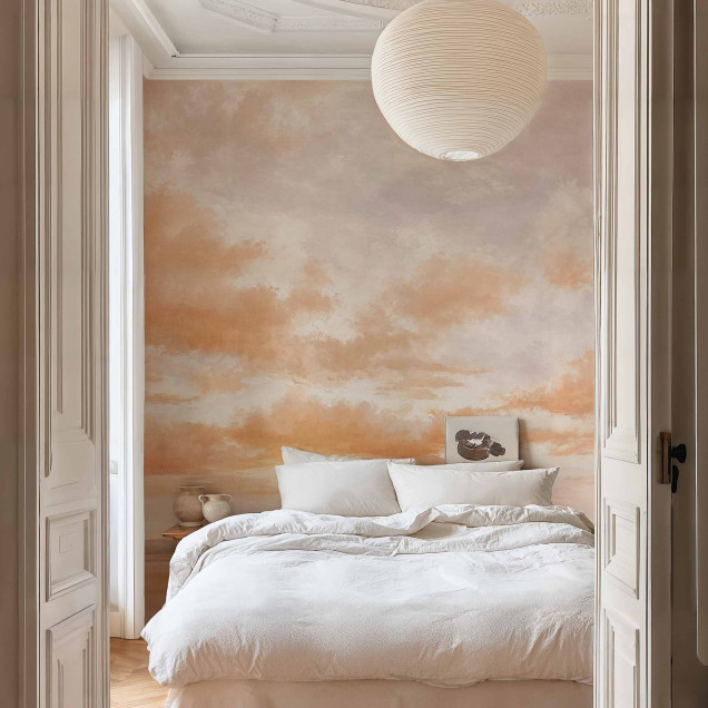 Transformă-ți camera într-un sanctuar liniștit cu acest tapet ce evocă un cer senin. Nuanțe calde de corai se îmbină delicat, creând un ambient relaxant și sofisticat. Ideal pentru dormitoare sau spații de relaxare.