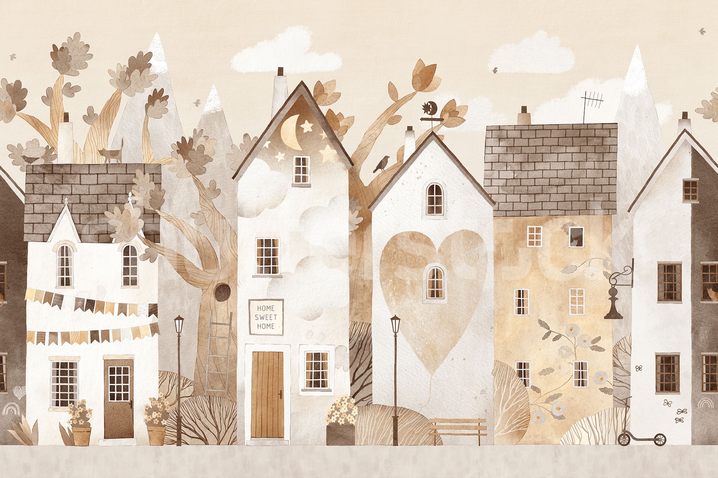 Cute Village, Autumn, Rebel Walls Tapet cu Peisaj de Toamnă Idilic
