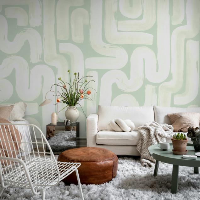 Drape Brush, Green, Rebel Walls Tapet Abstract cu Linii Moderne