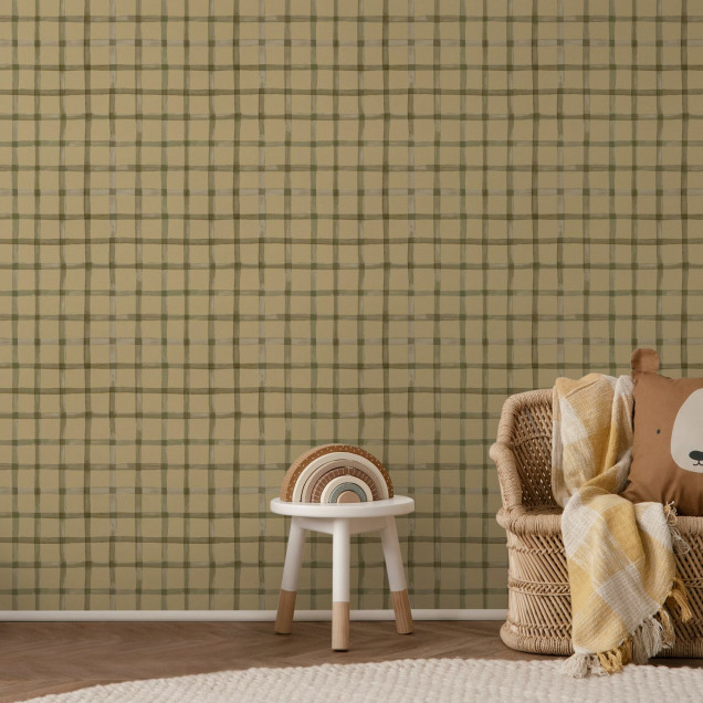 Adaugă un strop de farmec rustic cu acest fototapet! Model gingham în tonuri calde de măsliniu și bej, perfect pentru un decor primitor și relaxant. Ideal pentru living, dormitor sau camera copiilor.