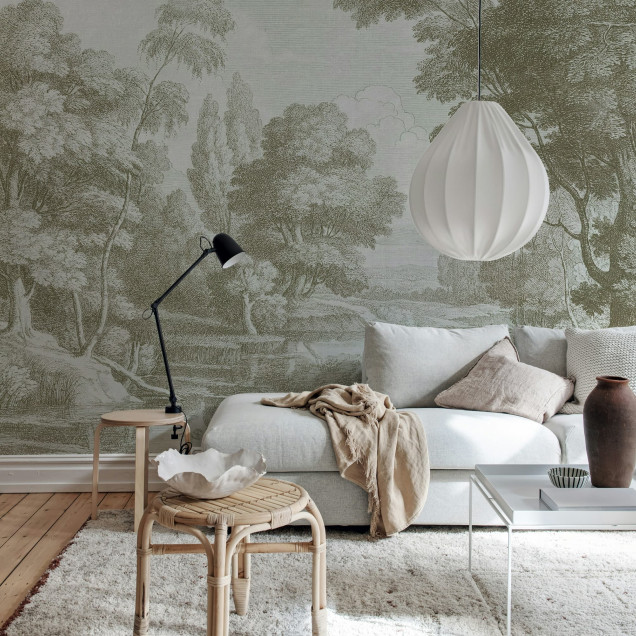 Etching Park, Beige, Rebel Walls Tapet decorativ cu design de parc bej