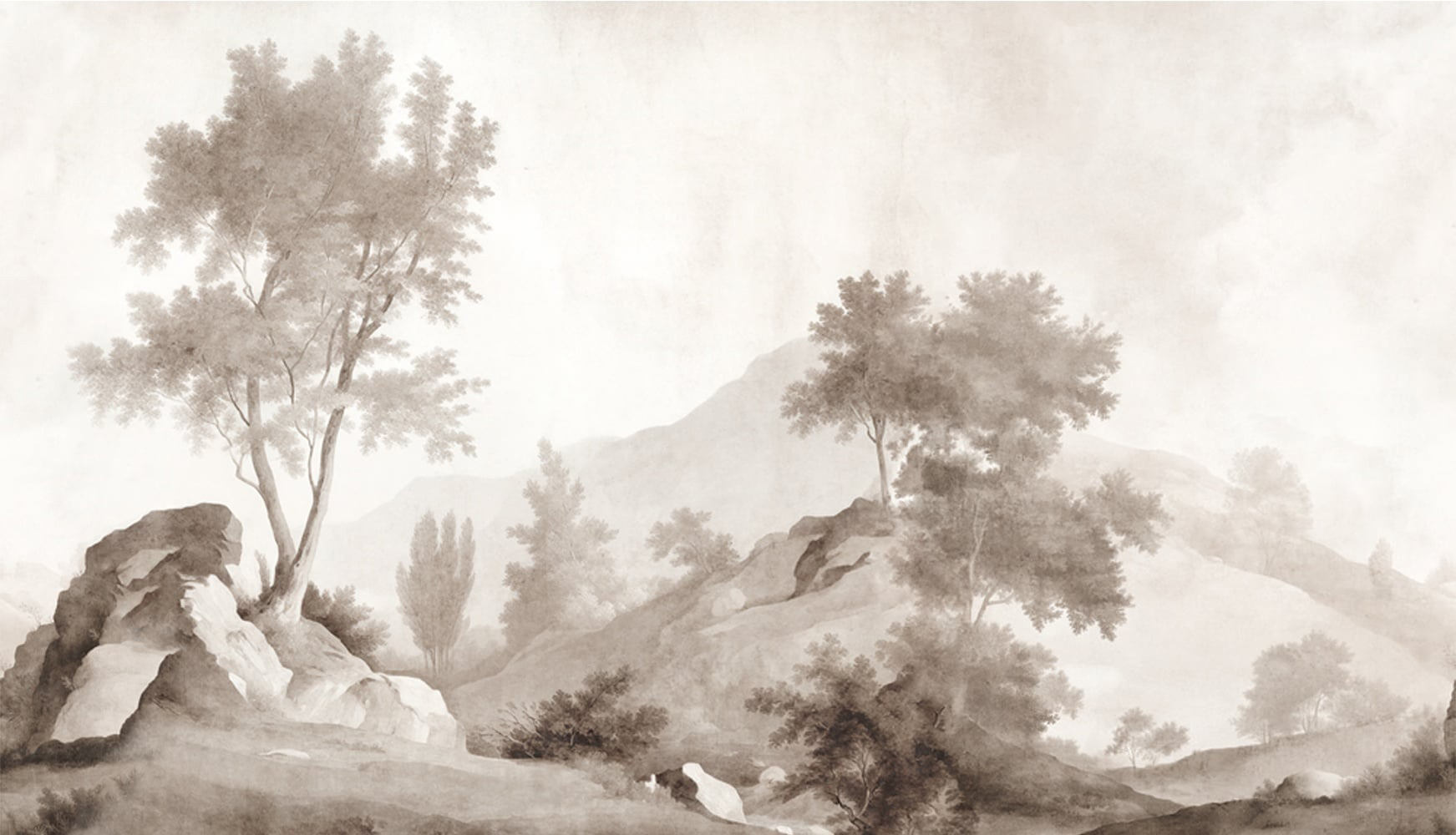 Ethereal Veil Cream este un mural al delicateții și al transcendenței. Ceața și lumina transformă peisajele în viziuni onirice. Pictat în degradeuri delicate de albastru, fildeș și nuanțe de teracotă, acest tapet evocă poezia clipelor efemere surprinse în tușe de pensulă.