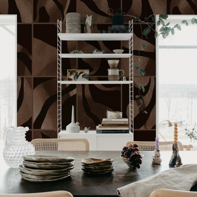 Floating Tiles, Dark Brown, Rebel Walls Tapet Abstract Maro pentru un Decor Modern