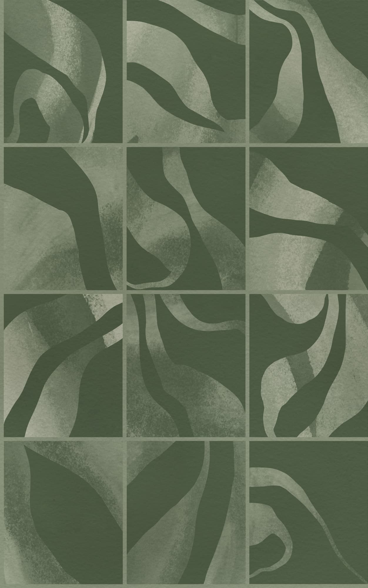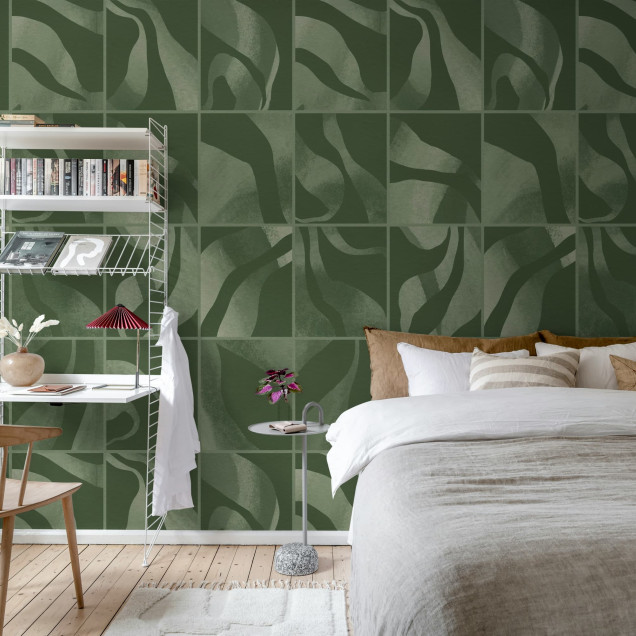 Floating Tiles, Dark Green, Rebel Walls Tapet decorativ cu motive moderne