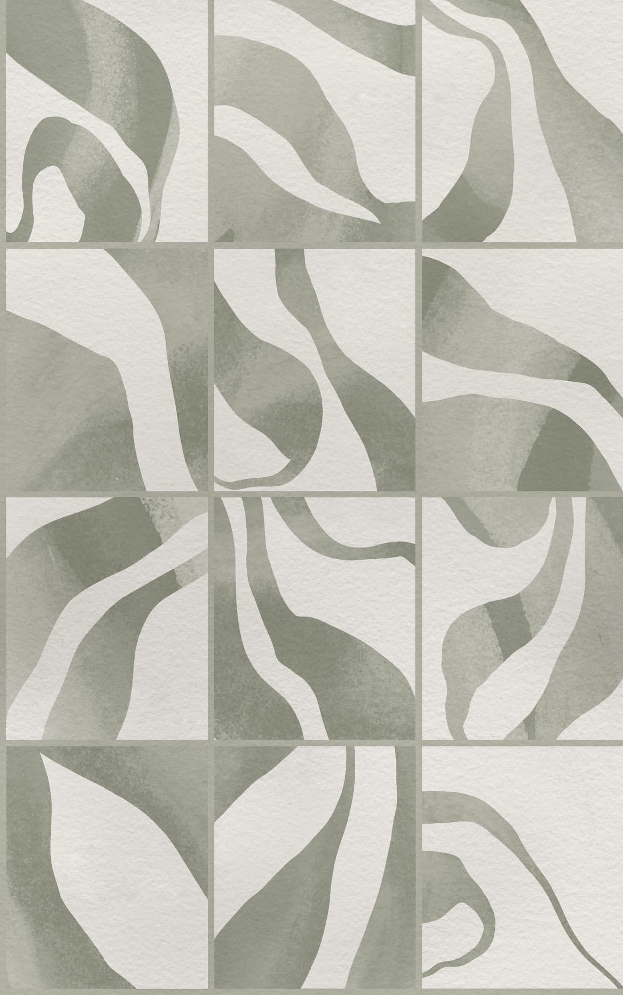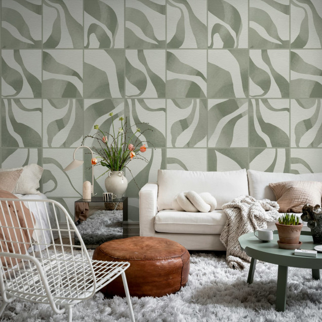Floating Tiles, Green, Rebel Walls Tapet cu design abstract în tonuri de verde