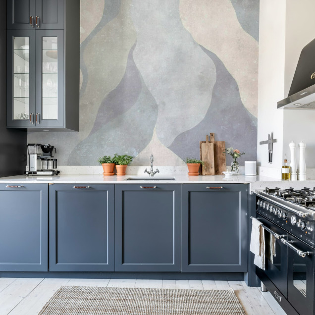 Flowing Forms, Blue, Rebel Walls Tapet cu Forme Fluide Albastre pentru un Interior Elegant