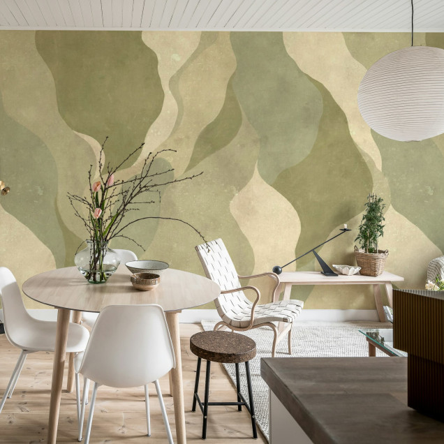 Flowing Forms, Green, Rebel Walls Tapet Abstract cu Forme Fluide Verzi