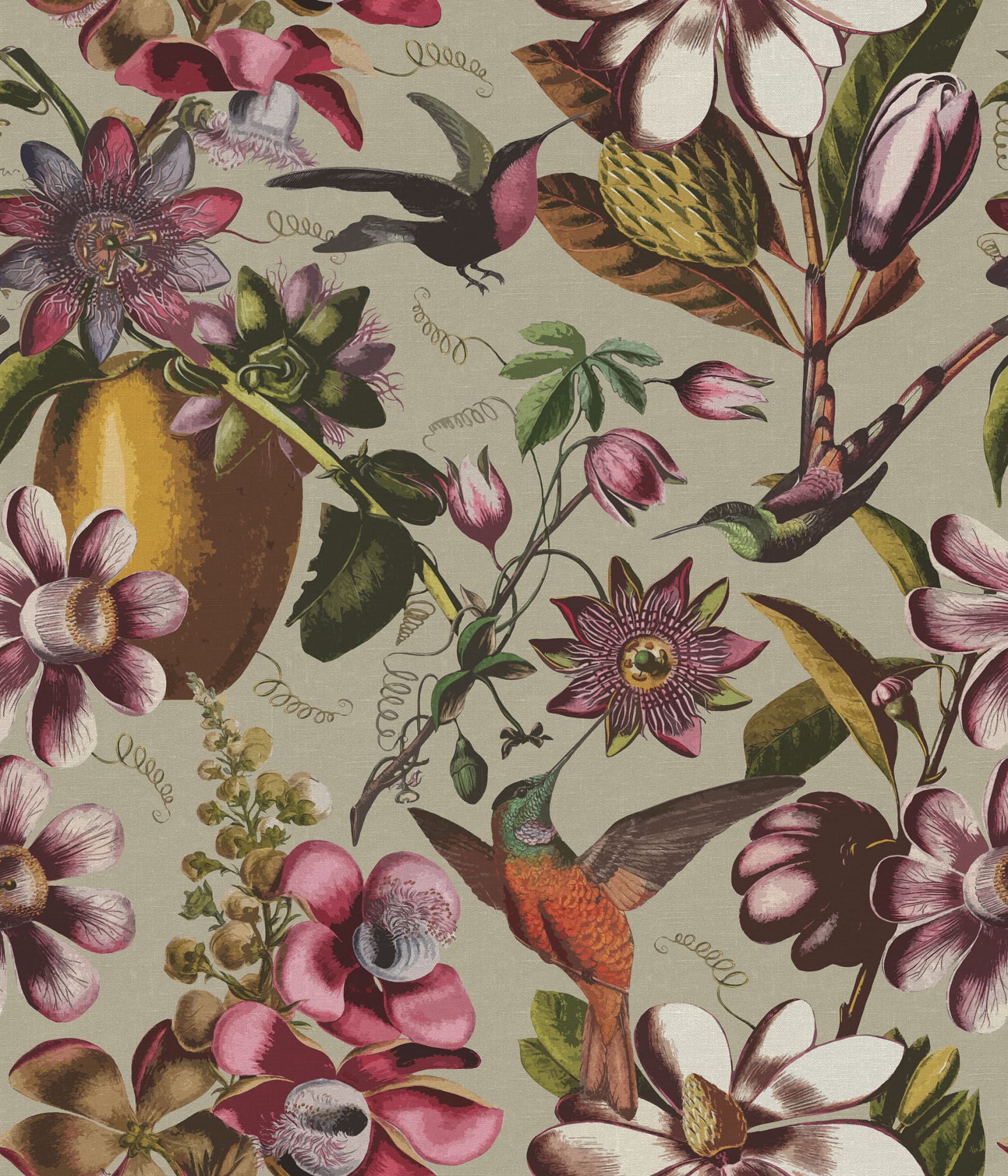 Flying Kolibri, Beige, Rebel Walls Tapet floral bej - Eleganță și prospețime