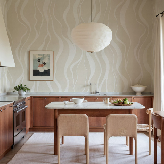Acest tapet bej cu linii delicate adaugă un aer sofisticat oricărui interior. Perfect pentru un decor calm și rafinat.Materiale disponibile