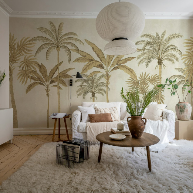Golden Palms, Beige, Rebel Walls Tapet Elegant cu Motive Tropicale