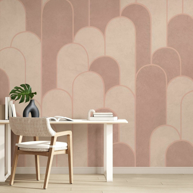 Adaugă o notă sofisticată oricărui spațiu cu acest fototapet. Modelul cu arce mari în nuanțe nude-roz creează un efect vizual subtil și rafinat.