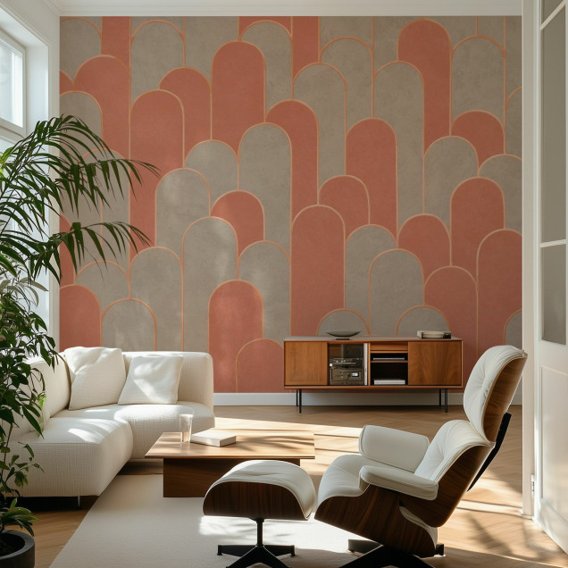 Fototapetul cu model arce în nuanțe de portocaliu și bej adaugă un plus de eleganță și stil oricărui spațiu. Ideal pentru living sau birou, creează un ambient cald și primitor.Materiale disponibile